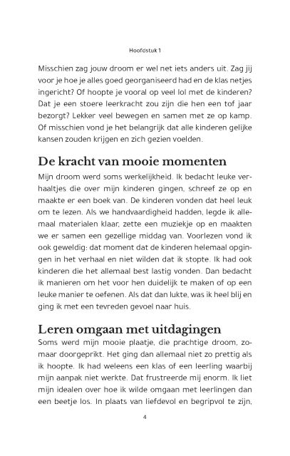 Het beste cadeau voor jezelf, voor jou als leerkracht en voor de kinderen in jouw klas. Over (lastig) gedrag begrijpen, verbinding maken met kinderen en een prachtig alternatief voor ‘straffen en belonen’. Vol met voorbeelden uit de praktijk en een aanpak die is bedoeld om te genieten van de omgang met de kinderen. Hoe kom je in vier stappen tot rust, verbinding en plezier in jouw klas? Lees het in dit boek.